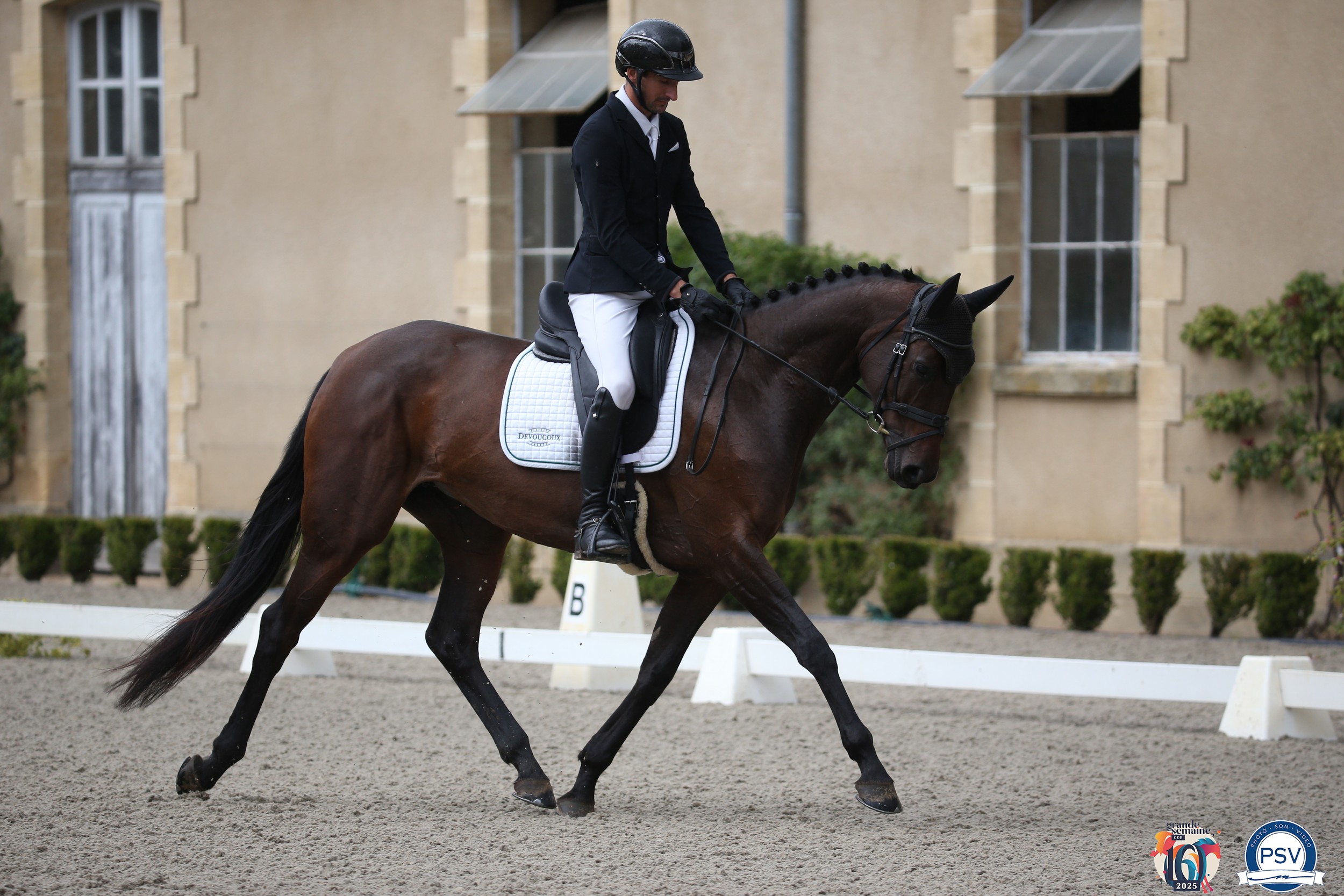 Le couple fait naître deux à quatre poulains chaque année, qui sont tous à vendre. “On garde ceux qui restent”, sourit Aurélie Durand. Kalamity fait partie de ceux-là, et n’a pas déçu ses naisseurs en étant restée à leurs côtés : la jument anglo-arabe de complément, fille du sbs Master van de Helle (Esprit de Conquête, sf) et de l’Anglo-arabe Qualice (Tunes of Glory, aa), a été sacrée championne des chevaux de 5 ans et offre ainsi la première victoire sur cette Grande Semaine à son cavalier, pourtant fidèle de l’événement depuis de nombreuses années. “C’est plaisant de monter un cheval qu’on a fait naître… La victoire signifie que le croisement qui a été choisi était le bon, et que le travail a payé”, sourit le vainqueur. Avec des notes de 16,75 pour le style et 16,15 au modèle, Kalamity termine la compétition sur un score de 33,98, et décroche ainsi la première mention Elite.