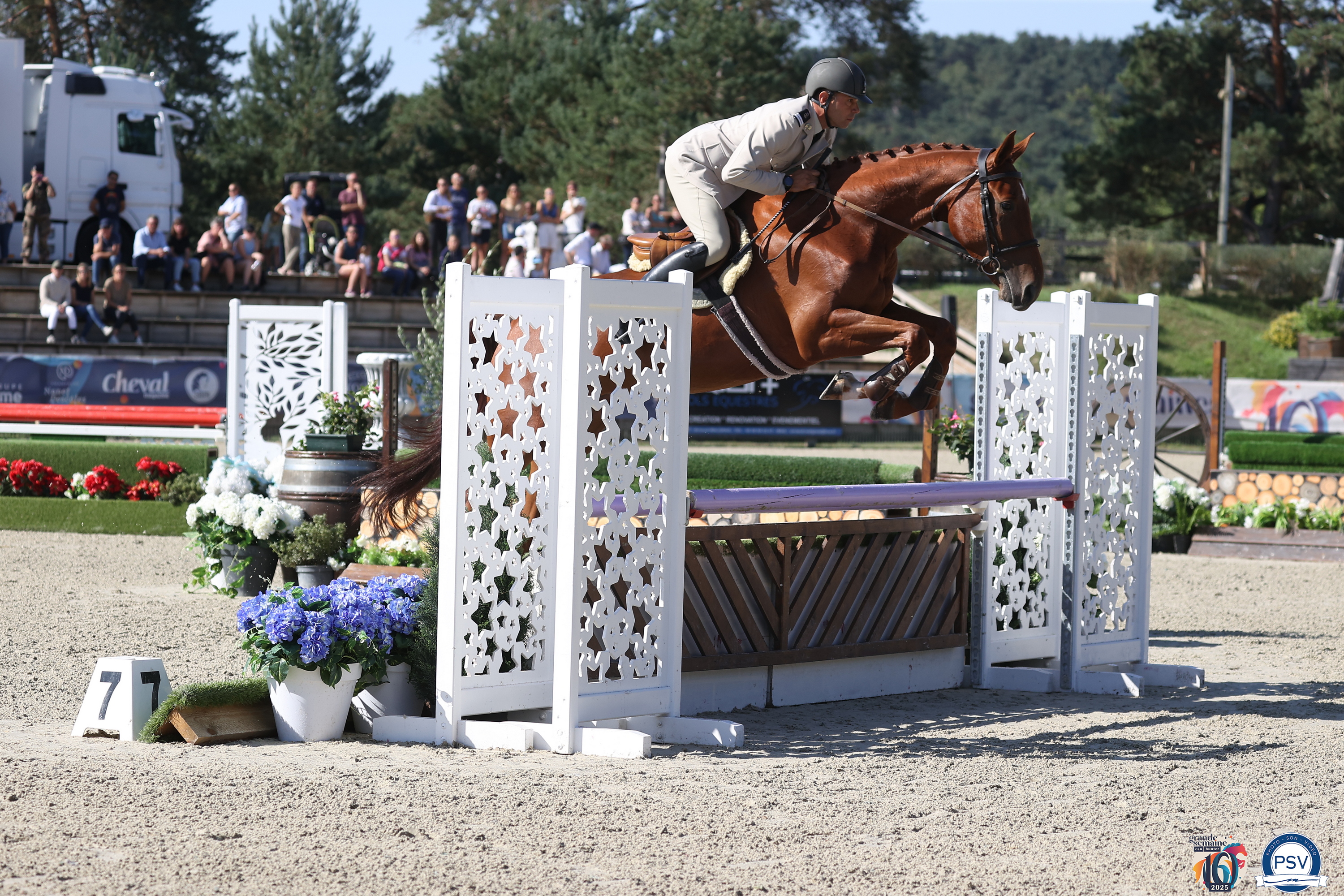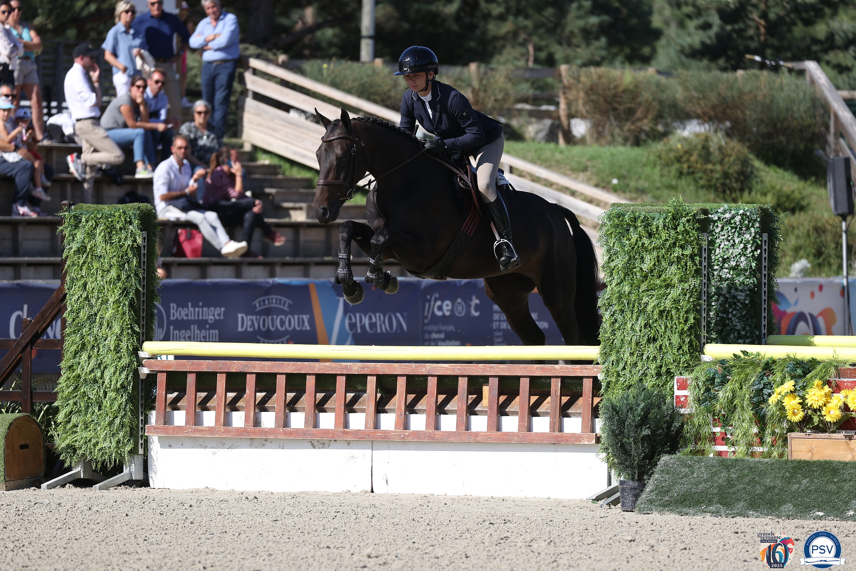Vice-championne, avec la belle moyenne de 15.86, dont un 16.63 au second tour, la jument Selle Français alezane Keops de l’Ombre*Mili, fille de Nectar des Forêts, sf et Rosée de Vénerie, sf par Robin II Z, han, née chez Véronique Le Provost à Diennes Aubigny (58), propriété du Ministère de la Défense, confiée aux rênes expertes du Lieutenant Benjamin Courtat, ravi de ce résultat. « Elle s’est magnifiquement comportée sur les deux jours, je suis très content de son évolution sur l‘ensemble de la saison. C’est la dernière fois que je la montais, car après avoir fait ses armes en jeunes chevaux, elle est destinée à l’instruction au sein de l’Ecole Militaire d’Equitation de Fontainebleau. Elle continuera à évoluer avec un cavalier moins aguerri » se félicite le cavalier, muté au lycée du Prytanée Militaire de la Flèche (72) où il continuera à former des chevaux et des cavaliers, comme le veut la mission des cadres des Sports équestres Militaires.
