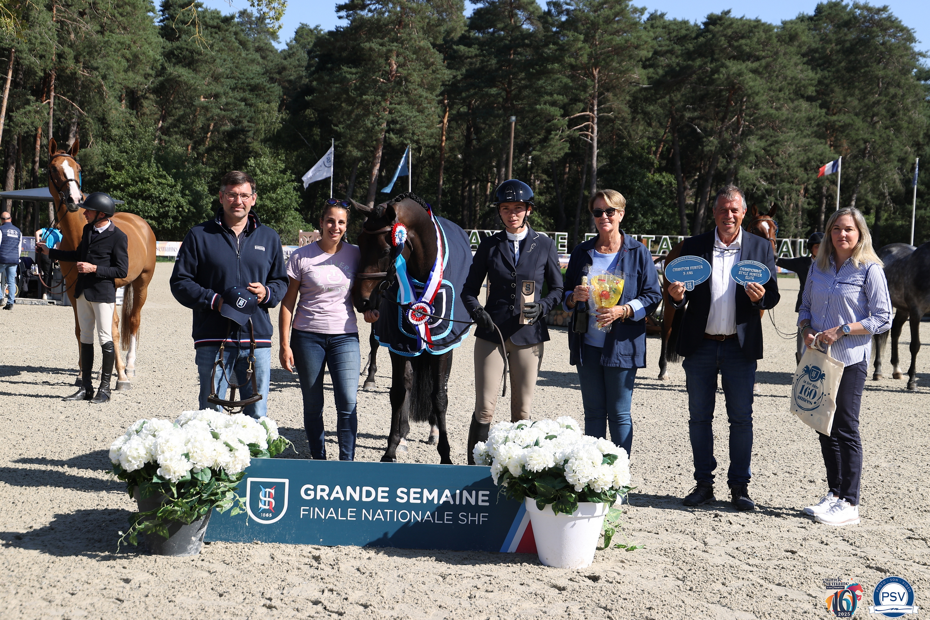 Emilie Blais, propriétaire de la championne acquise à trois ans à l’élevage du Hameau, ne boudait pas son plaisir « Nous sommes ravies aujourd’hui car ce titre valorise tout le travail que nous avons fait avec Julie. Krischna est destinée à la vente, elle a prouvé aujourd’hui qu’elle est promise à un bel avenir dans cette discipline. Je m’occupe principalement de la partie soins sur notre centre de rééducation, et Julie s’occupe de l’élevage et de la valorisation. Nous avons une soixantaine de chevaux sur le site. C’est la première année que nous nous impliquons dans le Hunter. Pour nous cette discipline gagne à être connue, car elle apprend aux chevaux comme aux cavaliers à pratiquer une très belle équitation. L’année prochaine, Krischna poursuivra sa progression sur le circuit des six ans avec Julie. C’est une très belle histoire car nous sommes autant amies dans la vie que partenaires professionnelles depuis six ans » relate Emilie, ravie et émue.